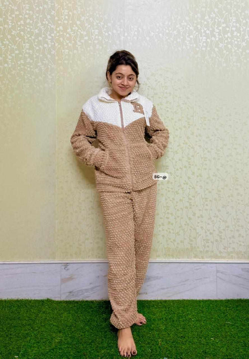 Women Winter Fleece Co-Ord Set – Warm Jacket & Pajama Combo
